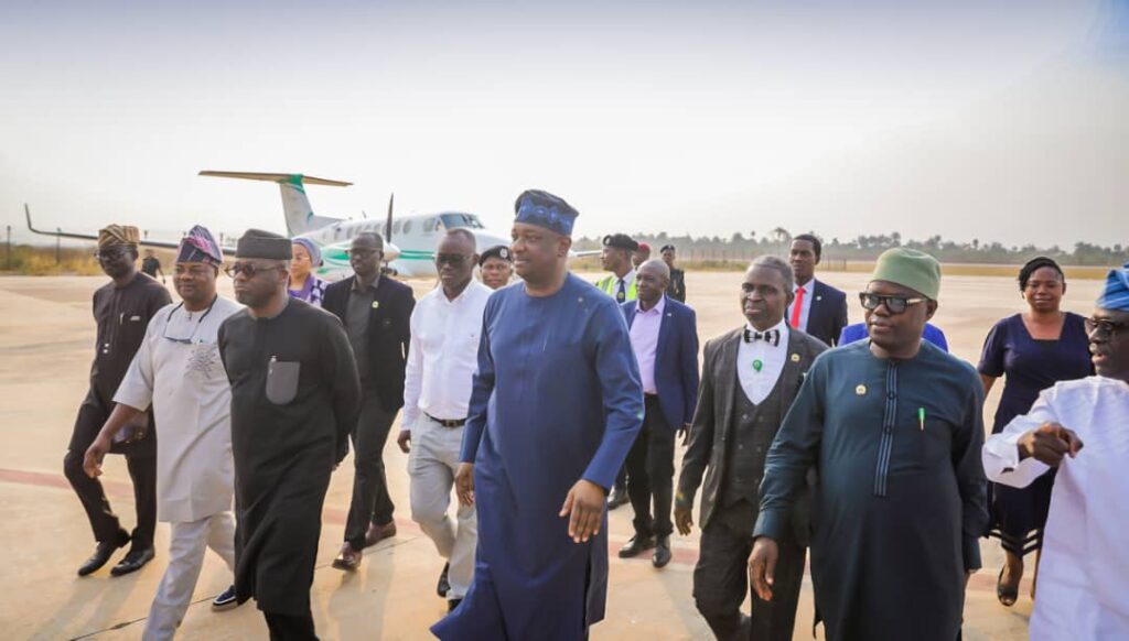 The Minister was received at the airport by the Chief of Staff to the Governor, Mr Oyeniyi Adebayo; Commissioner for Transport, Mr Kolawole Ajobiewe; Commissioner for Information, Rt Hon Taiwo Olatunbosun, Special Adviser Media, Mr Yinka Oyebode, and Technical Adviser to the Governor on Airport Project, AVM Sunday Makinde (rtd) among others.
