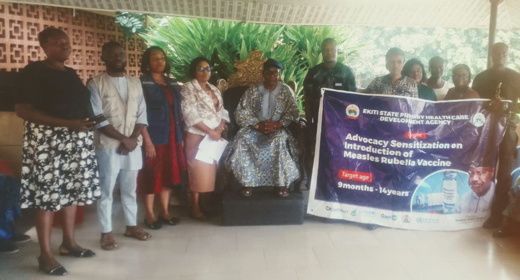 ” We are here for advocacy, sensitization and also endorsement of Measles- Rubella campaign introduction in Ekiti State. We are here to create the awareness and to tell our Kabiyesi as the paramount ruler of all the traditional rulers in Ekiti State so that they will help us to pass the information to all the rulers in the State that we are introducing measles rubella vaccine in the State.